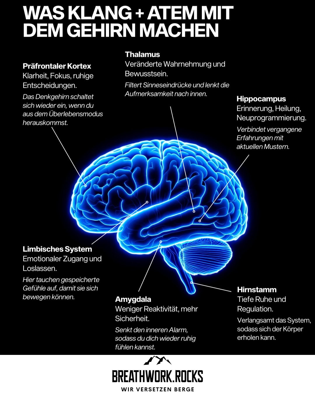 Breathwork.Rocks ist einer der ersten zertifizierten 9D-Breathwork Anbieter in der Schweiz: Eine moderne, multidimensionale Atemmethode, die bewusstes Atmen mit Klangtechnologie, geführter Meditation und neurowissenschaftlichen Ansätzen kombiniert. Das „9D“ steht für neun Dimensionen der Erfahrung – darunter Atmung, Klangfrequenzen, binaurale Beats, Visualisierung, Affirmationen, Hypnose-Elemente, emotionale Prozessarbeit, somatische Aktivierung und Integration.
